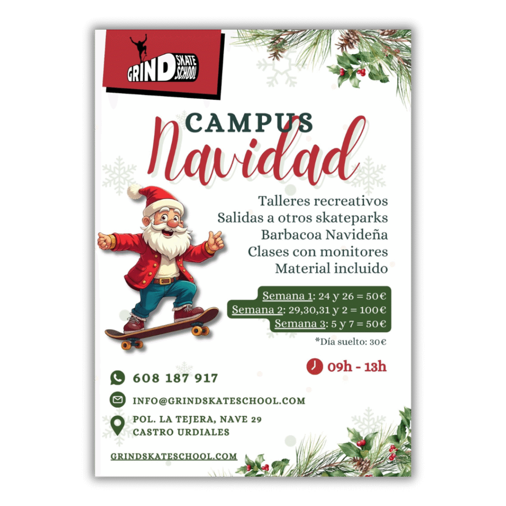 Talleres recreativos, salidas a otros skateparks, barbacoa navideña, clases con monitores.